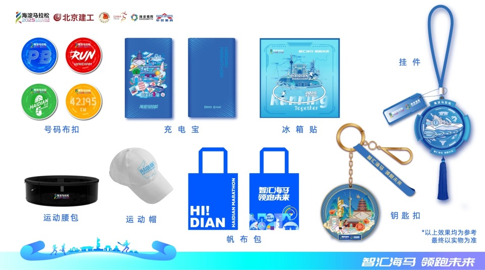 完赛奖牌、参赛服装、参赛包等物品一直是马拉松比赛的亮点。发布会上,“海马”完赛奖牌等逐一亮相。据介绍,“海马”完赛奖牌整体造型灵感源自慈寿寺塔八角形塔身,奖牌正面采用双层翻盖结构,模拟园林“移步换景”的意境,奖牌背面则以科技机械纹理为底,营造强烈的未来工业质感。参赛服装采用了高科技超轻快干面料,确保跑者在赛程中始终保持干爽舒适。组委会还精心打造了一系列文创产品,包括号码布扣、帆布包、运动帽、赛道地图冰箱贴、限量版挂件等,将海淀的科技基因与马拉松精神融合,让赛事记忆得以延续。